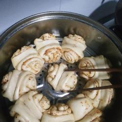 16. Make the shape and ferment it twice for half an hour.If it is steamed buns, it will be 20 It only takes a few minutes.Grease the steamer with oil.After the water boils, put the flower rolls into the pot one by one and steam them for 25 minutes.Let them simmer for five minutes