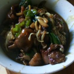 6.Add the fried mushrooms and green peppers and simmer for about 2 minutes.
