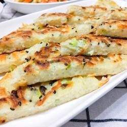 5. Heat a pan, add an appropriate amount of peanut oil or other edible oil, put the raw materials in, and then Sprinkle an appropriate amount of black sesame seeds and fry over low heat until golden brown on both sides.If it is a thick potato shredded cake, it must be cooked on a low heat and it will take a little longer, about five or six minutes.Pancakes can be cooked over medium heat.