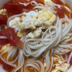 11.After the noodles are cooked, add the fried tomatoes and scrambled eggs