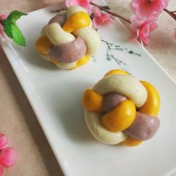 1.Steam purple sweet potato and pumpkin, grind into puree and set aside