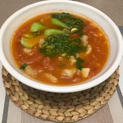 13.Add the cooked Longli fish and tomato soup to the cooked noodles