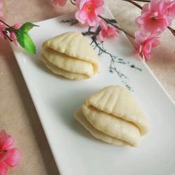 8.Use the back of a knife to stamp the fan-shaped dough piece