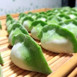 2. Divide the flour into two parts, one part with water and one part with spinach juice.Let it rise for half an hour.