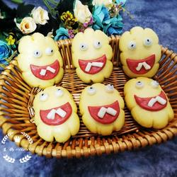 9.Use a knife to press in two lines on each side and attach them to the mouth, teeth and eyes..Cover with a piece of cloth and let rise until 1.5 times in size.