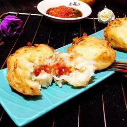 8. Fill the preheated spoon with the batter mixed with shredded radish, put it into the oil pan, fry over low heat until golden brown and then serve