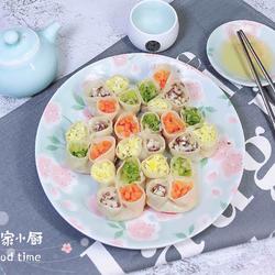 16.Slightly turn it outwards into a petal shape, and add diced vegetables respectively.