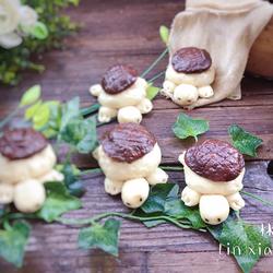 8. Then cut the edges of the brown sugar dough into thin slices and place them on the turtle