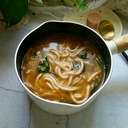 1. 1 package of udon noodles, 1 sausage (half used), a little chrysanthemum, bean sprouts A little, appropriate amount of hot pot base