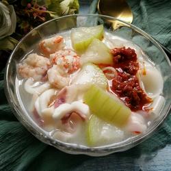 4.Add squid, shrimp, gourd and boil until cooked