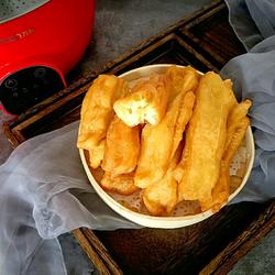 12. Fry the fried dough sticks until golden brown and turn them over with chopsticks or tongs.