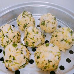 6. Heat the water in a pot and knead the corn grits into the shape of steamed buns