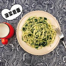 4. Pour the spinach leaves into the pasta water in the blender and cook, then remove them