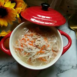 3.Put an appropriate amount of water into a small milk pot and bring to a boil, add shredded carrots