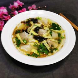 12.Add coriander, green onions, shredded eggs and seaweed.