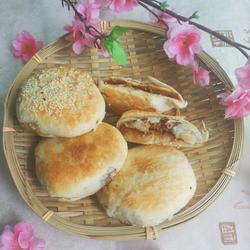 8. Then fold the dough together like making steamed buns, without leaking the meat filling, and make it into a pancake shape.If you like sesame seeds, dip the pancakes with sesame seeds
