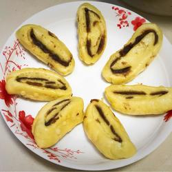 5. Dry the dough flat, spread the bean paste on it, dry it and stick it, and then roll it back.