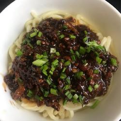 15. Finished product picture.Pick a bowl of hot dry noodles, add an appropriate amount of fried sauce and you’re ready to eat~ (chopped green onion depends on your personal taste).