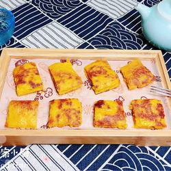 14. A plate of sweet and delicious milky pumpkin egg pancakes is ready, served with Porridge and milk are both good choices for breakfast.