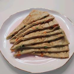 5.Pour the prepared powder into the electric baking pan Stack the pancakes evenly and cover them to start pancakes.After frying, take out the pancakes and cut them into small corners