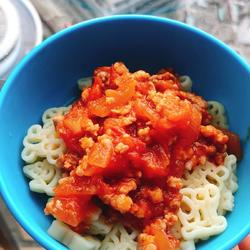 4.Finally, mix the minced meat together and simmer for a while, then add the purchased tomato sauce ( You can add it or not), the taste will be more sour and sweet after adding it.Children prefer it.