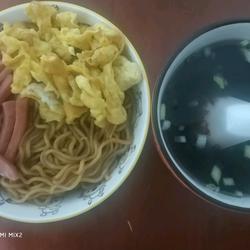 10.Be sure to add scallion oil and stir the noodles immediately, otherwise the noodles will clump together, and then add the ham Place in a bowl with eggs
