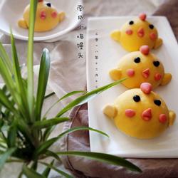 2.Put water in two basins, melt the yeast and add a tablespoon of sugar.One of them has a little more water, add flour directly and make a white dough.Put a little less water in the other one, add pumpkin puree and flour, and mix into a yellow dough.