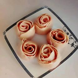 Roll out the dough.If you want a big rose, put 5 pieces of leather, and for a small rose, put 3 pieces of leather.Spoon the meat filling onto the five-part wrapper, fold it in half, and roll it up.It becomes a rose on the plate
