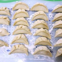 14.Put the meat filling in the middle, fold it in half and pinch it firmly