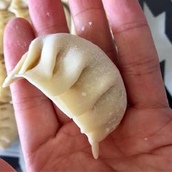8.Put the filling into the dumpling skin, shape it, and dip the edges with your fingers Apply a circle of water.Ready-made dumpling wrappers bought at the market usually have a lot of dry flour on both sides.Since they are made in advance, they are easier to dry out.These will affect the adhesion of the dumpling wrappers and make them easy to break when cooked.After dipping in water, all these problems are solved.