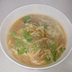 8.Saute the shredded pork in the pot, add water, and put the noodles after the water boils