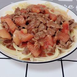 2.Put water in the pot, wash the tomatoes and make a cross with the water.Pick up the tomatoes, peel them and set aside.Add the spaghetti and add salt (cook for about 10 minutes, stirring while cooking so the spaghetti will not stick to the pan)