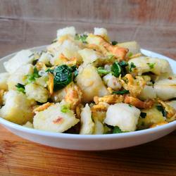 4.Pour in and stir-fry evenly.Fry for about 15 seconds.