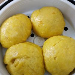 Pumpkin steamed buns are sweeter when they are cold.I like to eat them colder.