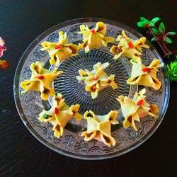 7.White dough, use a little spinach juice to form small pieces of noodles.