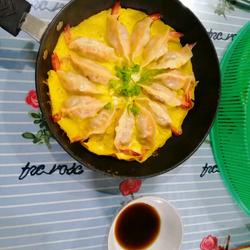 3. Steam the dumplings until cooked Then put it into the pan and fry for 30 seconds, then add the eggs to complete the pan
