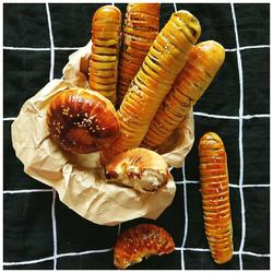 4.Roll it into a ox tongue shape and use a knife to score stripes