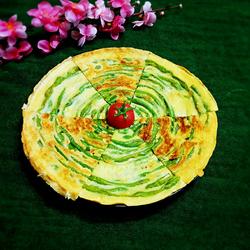 15. Turn the pan to spread the batter evenly.Fry over medium heat until the crust can jiggle at the bottom of the pan.
