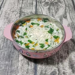 The key to making this noodle thread It depends on the properties of step 5.If it is too thick, it will be difficult to squeeze out.If it is too thin, it will be difficult to form the noodle thread.When squeezing out the noodle thread, raise your hands higher so that the squeezed out noodle thread will be long and thin.It is best to squeeze the noodles into the pot in a circular motion to prevent the noodles from getting stuck together.If the baby's chewing ability is weak, you can squeeze it for a while and the noodle thread will be slightly shorter to prevent the baby from choking.The cooking time can be adjusted according to the baby's chewing ability.