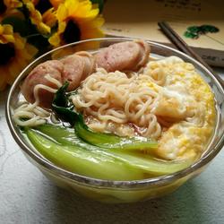 11.The delicious ham sausage, egg and vegetable noodles are ready