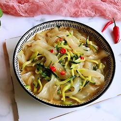 7.Put the cold skin and cucumber shreds into a bowl, and pour in the sauce
