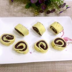 6.Put the egg skin out and spread it flat, and spread a layer of purple sweet potato puree on it