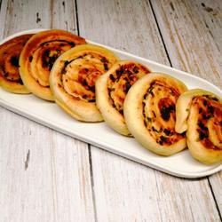 8.Roll up the dough from top to bottom, flatten it with the palm of your hand and let it rest for 10 minutes