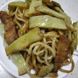 Pork Belly Stir-fry the oil until fragrant and then add the beans.If you don’t like the noodles that are too dry, you can rinse them with water and put them in the pot