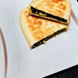 16.Put it into the preheated electric baking pan, cover it and heat it up and down for three minutes, then turn over and continue heating for another two minutes!