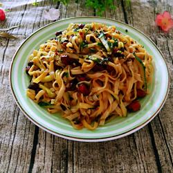 8.Put an appropriate amount of chili pepper into the fried peanuts and oil Pour into the noodles together