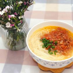 17.Put the noodles in a bowl, put the previously cooked sauce on the noodles, and sprinkle Just chopped green onion.