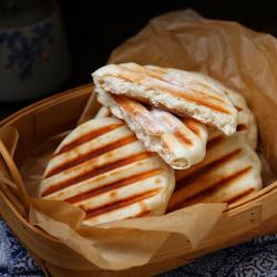 8. Brush a thin layer of oil on the electric baking pan and heat it up, put the cake embryo into the pan and bake it over low heat.I used a steak machine, and the finished product has a pretty pattern.