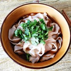17. Pour the trouser belt noodles into the seasonings and add an appropriate amount of minced coriander and enjoy.If you like chili, you can add an appropriate amount of chili noodles or chili oil to stir-fry the noodles.