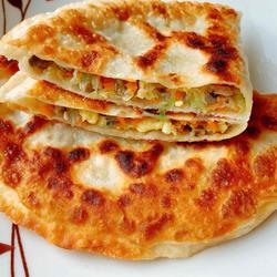 7. Fold the other half in half, press the sides, brush the pan with oil, and when it is 70% hot, put Add the zucchini, cover the pot, and cook until one side is golden, turn over, and cook slowly over low heat.